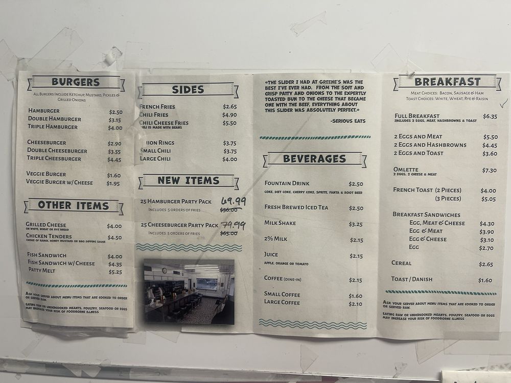 What services does Greene’s Hamburgers offer?